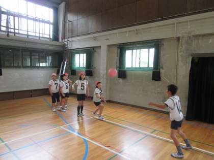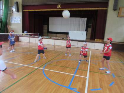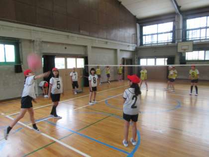 はじめは,なかなかレシーブやサーブがうまくいかないようですが,チームの中で声をかけあって励まし合っている姿も見られました。