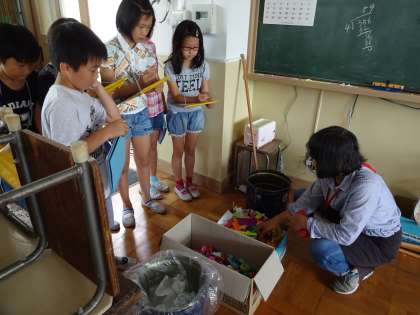 社会科の「くらしとごみ」の学習で,学校から出るごみについて考えました。教室から出るごみはどんなものがあるのか話し合いました。また教室以外に,どんなごみがでるのか,職員室・理科室・図工室・給食室・保健室・用務室・事務室におられる教職員の方々にインタビューをしました。予想していないごみが出ることに驚いていました。
