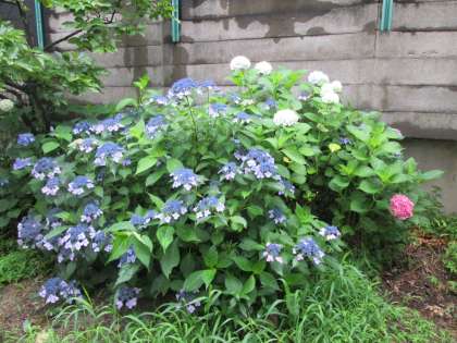 北校舎の東側,ひょうたん池よりもまだ奥に,紫陽花の花が咲いています。目立つ場所ではないのですが,今がまさに満開の時期を迎えています。