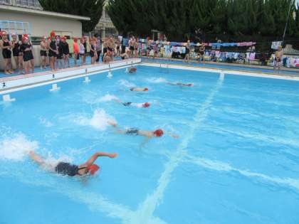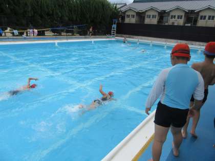 友達が泳いでいるのをみて「がんばれ!」「もう少し」などの声かけが出来ていて,みんなで頑張ろうという姿を見ることができました。