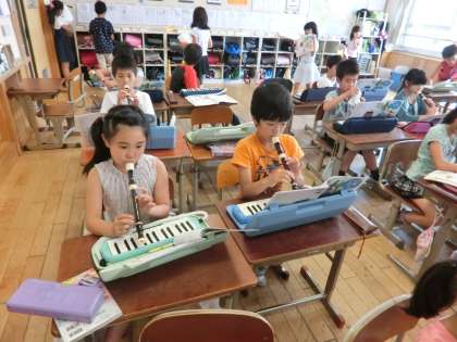 リコーダー練習をがんばっています。来週からは,音楽のファイルを作り,リコーダー曲を印刷してはさんでいこうと思っています。リコーダーを毎日持ってきてもらって,音楽の無い日でも練習をできるようにしたいと思います。