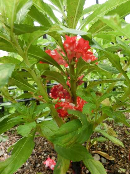 ホウセンカの花がきれいに咲いています。茎の色で,咲く花の色が分かることを子どもたちに伝えると,とても喜んでいる様子でした。