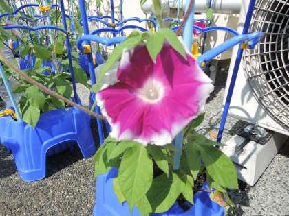 朝、アサガオの花が咲いていました。まだ全員のアサガオが咲いたわけではないですが,「僕の明日には咲くで!!」といいながら水やりを頑張っていました。