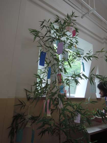 七夕に向けて,図工の時間に短冊に願い事を書きました。