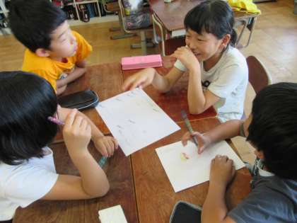 子どもたちは,それぞれのアイディアを出し合って,考えを深めていました、