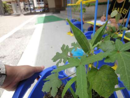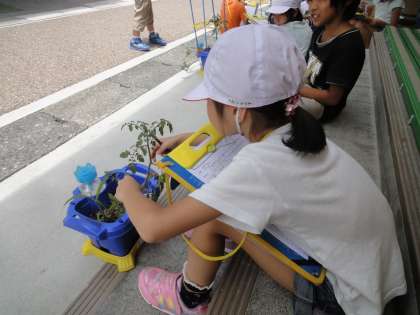 今日は久しぶりに,育てている野菜の観察をして,見つけたよカードに成長の様子をかきました。既に,実ができている植木鉢もあって初収穫をしている子どももいました。カードにかいた後は,たくさんあった雑草を丁寧に抜きました。野菜がたくさん収穫できるように,これからも頑張って世話をしてほしいと思います。