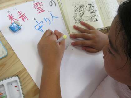 子どもたちは,文字の大きさや配置,色などを工夫して,読者をひきつけようと頑張っています。