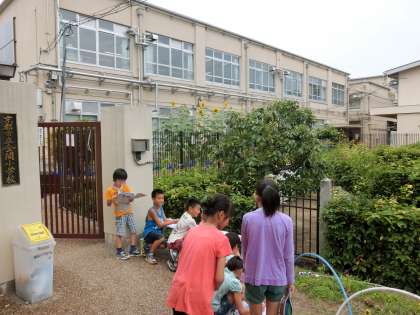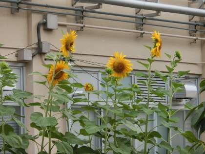 大輪を咲かせているヒマワリを観察しました。「太陽のようにきれいでした。」という感想がほほえましかったです。全ての花が,東の方を向いています。朝日を受けて,大きくなりました。