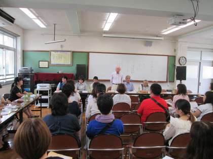 8日,シアターにて地域懇談会を実施しました。地域の方々,PTA本部と愛護委員の方々,北警察署の方々など,たくさんの方にご出席いただきました。