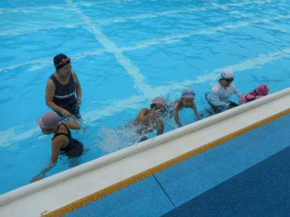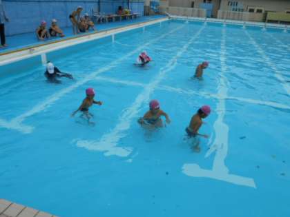 今日の学習で水の中に顔を入れることが出来るようになった子や,以前より,水が怖くなくなった子もいて,学習の成果が出た時間でした。