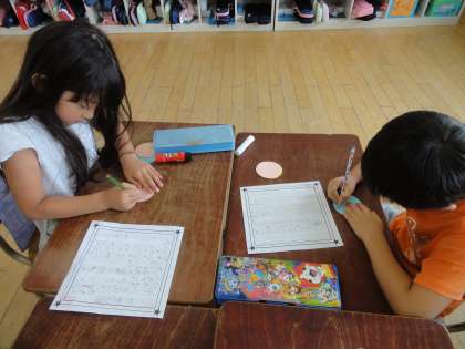 国語科の学習では,友達に知らせたいことを組立てを考えて書きました。今日は,その交流をしました。友達の文章を読んで,文章のよいところを見つけ,カードに書きました。よいところをたくさん見つけることができたので,これから文章を書くときにいかしてほしいと思います。