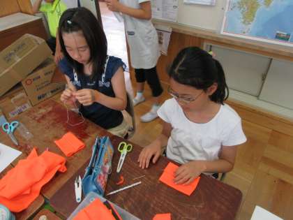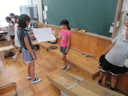 大道具を作ったり,説明の仕方を工夫したりとそれぞれのグループで工夫しながら準備を進めています。