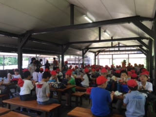 まずは、野外炊事場のテーブルで、お弁当を食べて腹ごしらえをしました。しっかり食べて午後からの活動に備えます。