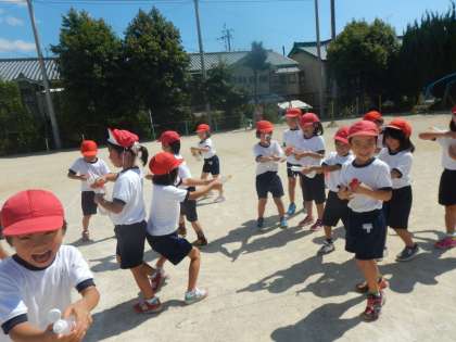 「きゃー!冷たい。」と言いながら、走り回って喜んでいました。