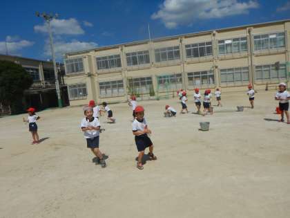 今日は生活科の学習で、夏の水遊びをしました。