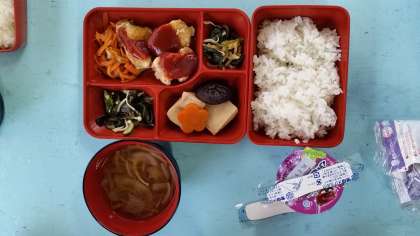 楽しみにしていた、晩ごはんです。今日も1日元気に活動したので、みんなたくさん食べています。スープやごはんをおかわりする子も。このあとは、待ちに待ったキャンプファイアーです。曇ってきて、お天気が少し気がかりですが、出し物の練習もしてきたので、みんなで楽しい時間を過ごしてほしいと思います。