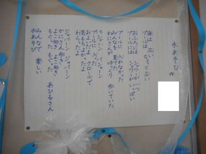 プール学習の様子を絵で表したり,詩を作ったりして表現しました。