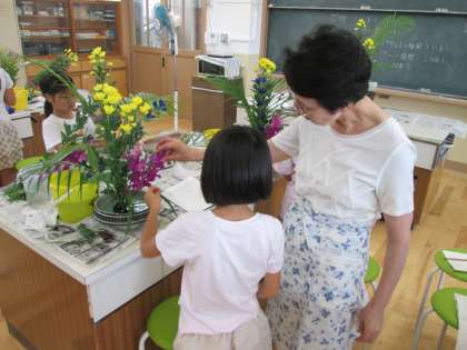 今回もまず,生け花についてのお話を聞かせていただいた後,実習をしました。