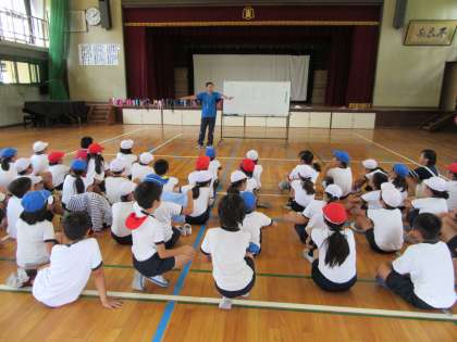 100m走の並び方を確認したり,棒引きの競技の仕方を確認したりしました。