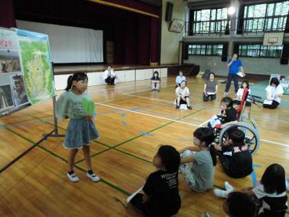写真は初めにどんなところに行ったか思い出している場面と学習の最後の振返りをしている場面です。