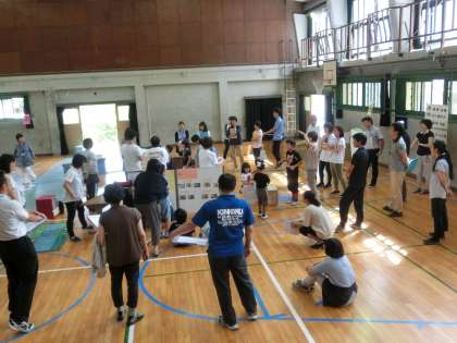 バスや地下鉄を段ボールなどで作り,実際に走らせて説明をしました。