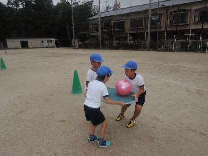ころころ転がるボールに四苦八苦しながらも,どの子も一生懸命に,そして楽しく練習することができました。