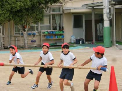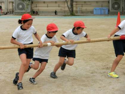 台風の目の練習を進めています。木曜日は,第1グラウンドで練習しました。心を一つに,安全に速くできるよう話し合いながら,勝利を目指しました。驚くほど上達していました。これからも練習を重ねて,チームワークを高めてほしいです。
