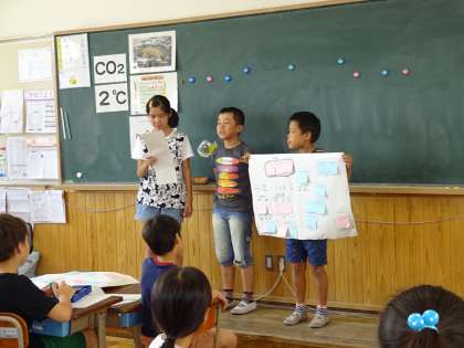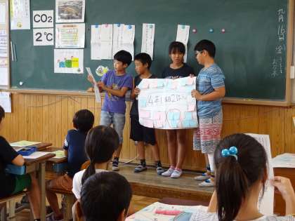 夏休みの取り組みから,自分たちのグループのエコライフ目標を考え,クラスのみんなに発表しました。