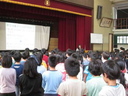 校長先生は後期に向けて,しっかり学習をしましょう,とお話しされました。学習を積み重ねることで,相手に気持ちを伝える文章が書けたり,相手と心が通じるように話したりすることができます,と話されました。