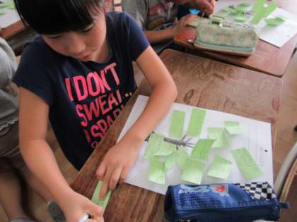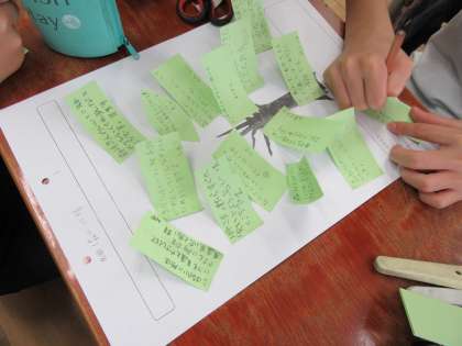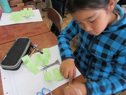 友達のよいところをふせんに書き合い,「きらきらの木」を作りました。