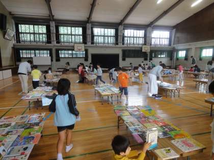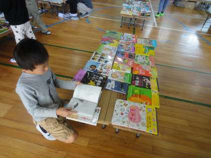 金曜日は選書会を実施しました。年に一度,たくさんの本が講堂に並び,自分の好きな本を選べるということで,子どもたちはとても楽しみにしていました。選書会では,時間いっぱいに本の世界を楽しみ,図書室に置いてほしい本を選んでいました。