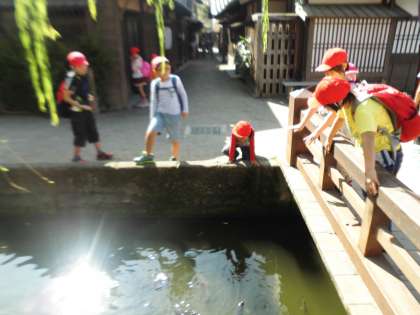 また,近くを流れる水路に小さな鯉が泳いでいました。