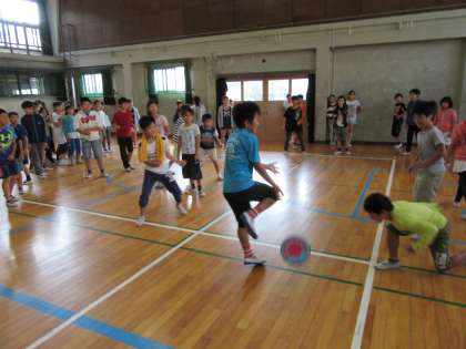 なかなかの盛り上がりを見せ,一生懸命投げ合い,よけ合いをしていました。
