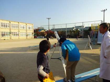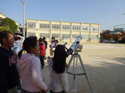 今日は,理科の学習で延期になっていた半月の観察を行いました。月の観察を14時と15時の2回行い,動いているのかどうかを確かめました。また,理科支援員の先生に望遠鏡をだしてもらい,望遠鏡でも月を見ました。いつも見ている月ですが,とても感動して見ていました。