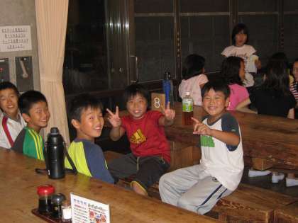 山の家に帰ったらすぐにお風呂!さっぱりしました。そして,夕食をとりました。