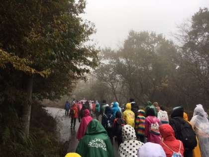 少しずつゴールが近づいてきましたが,一歩ずつしっかり前に進むことが大切です。悪天候の中ですが,頑張っています。