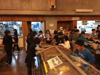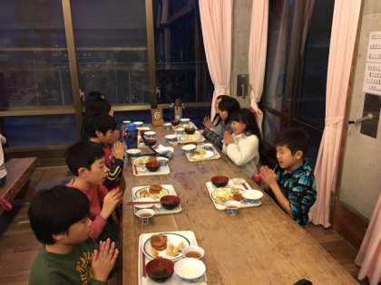 天狗杉登山が終わり,入浴も済ませ,食事の時間です。子どもたちは,どの献立を食べようか,楽しみながら選んでいました。選び終わると,みんなとわいわい楽しく食べることができました。