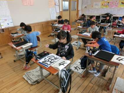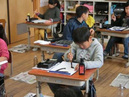 子どもたちもだんだん習字に慣れてきて,集中してがんばれています。今日はいつも以上にたくさんの練習をして本番にのぞみました。「いつもよりきれいに書けた」と喜ぶ子が多かったように感じました。子どもたちの集中力に拍手です。