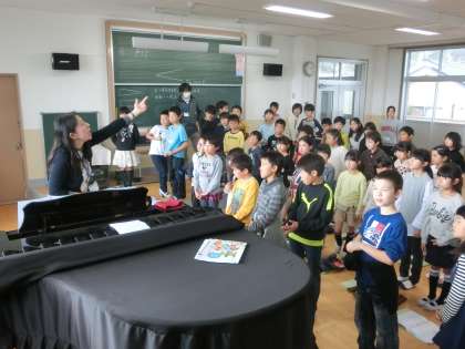 今日(火曜日)の5時間目の音楽では,本校の音楽科スクールサポーターの井上先生に,歌の指導を受けることができました。頭声発声をどのようにするのか。そのコツや力まない大切さ,感情の込め方,表情の重要さなどについて,しっかりと教えていただきました。子どもたちも,本格的な歌の指導に目を輝かせ,教えていただいた技術を自分たちのものにしようと,集中して学習に向かえていました。