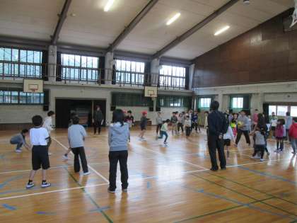 今回も6年生のリーダーが,みんなで楽しい時間を作ろうと事前にどんな遊びをするか考えてくれました。グループごとに,教室,中庭,第1グラウンド,講堂などに分かれ楽しく遊びました。