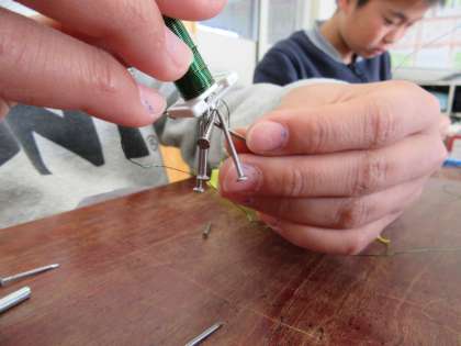 電池の数を変えて,電流の強さを変えてみたり,コイルのまき数を変えたりして調べました。