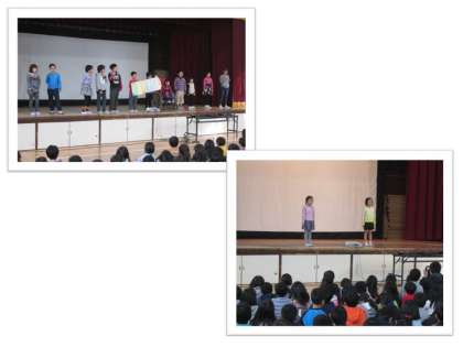 全校集会の後,今年度2回目の金閣タイムを実施しました。今回は,にじの子・1・4・5年生が発表をしました。
