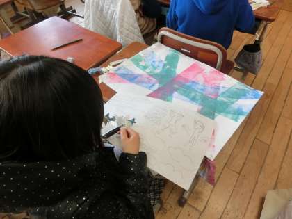 3年図画工作科「ステンシル版画」仕上げ
