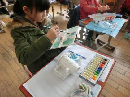 3年図画工作科「ハッピー小物入れの色付け」