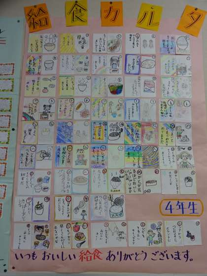 給食週間の取組として,学年で給食カルタ作りに取り組みました。子どもたちが考えた給食カルタをエントランスに掲示しています。ぜひ,来校された時にご覧ください。