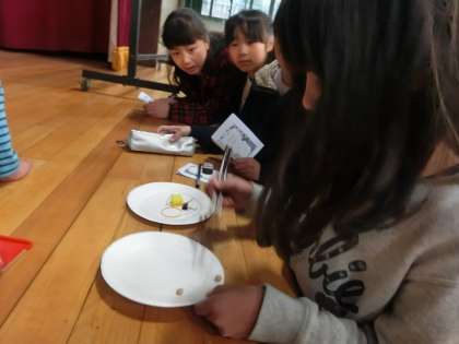 豆つまみや,食材カードを使ったゲーム,クイズに挑戦しました。雨(雪)の日だったので,外で遊べない分,楽しく給食のことを学べてよかったです。子どもたちも意欲的に検定にチャレンジしていました。