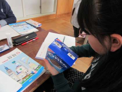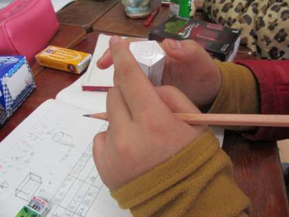 実際に三角柱や四角柱,五角柱を手に取り,数を数えて表にまとめました。