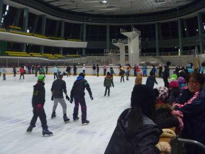 今日はアクアリーナへスケート教室に行ってきました。何度か来たことがある子も,初めての挑戦だった子も,みんな楽しくすべっていました!