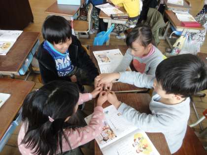 音楽科の学習では,「わらべ歌」を聴いたり歌ったりしました。知っているわらべ歌はもちろん,初めて知ったわらべ歌も,子どもたち同士で教え合いながら楽しむことができました。子どもたちから,「おもしろい。」「もっとやりたい。」「休み時間にもやろう。」という声がたくさんあがり,休み時間にも楽しむ様子が見られました。
