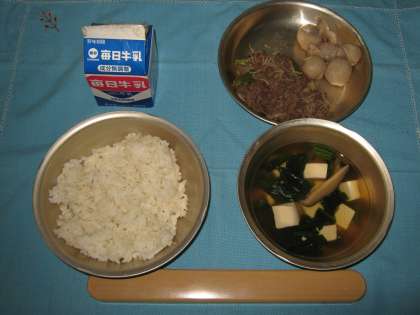 麦ごはん 牛乳 牛肉のしぐれ煮 里いもの煮つけ とうふの吉野汁